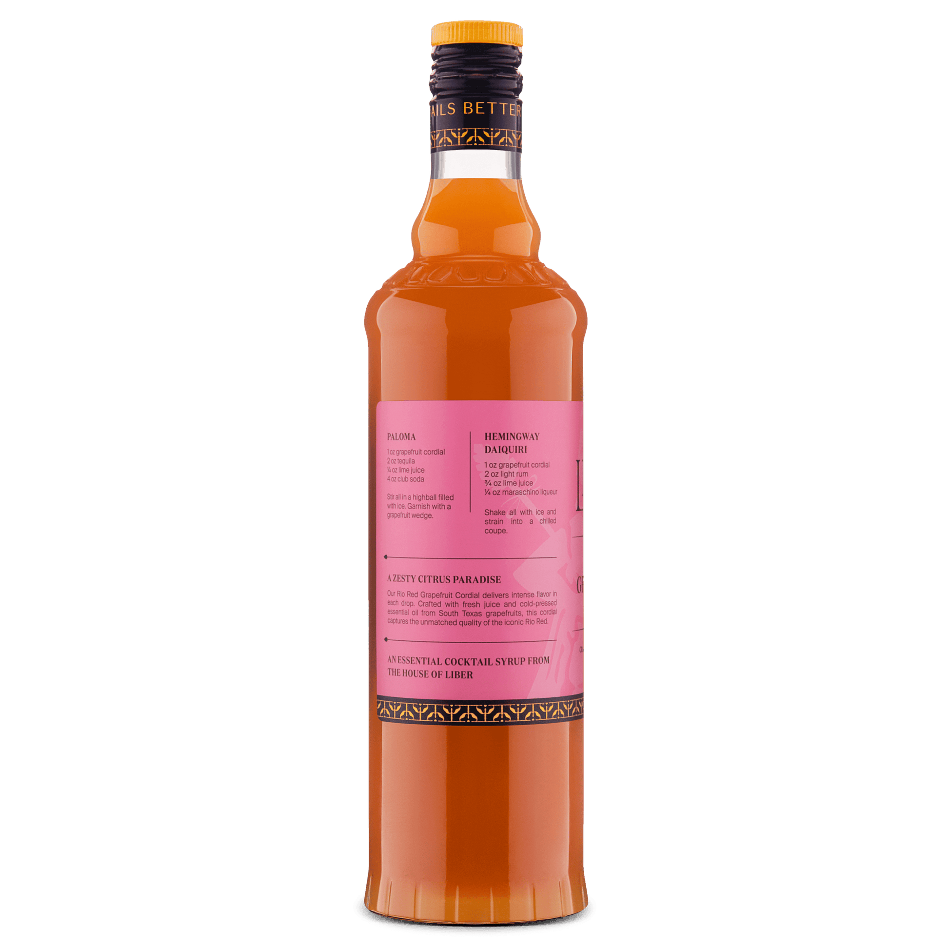 This Rio Red Grapefruit Cordial captures the full flavor spectrum of ripe Texas grapefruit. We marry fresh Rio Red grapefruit juice with the fruit’s cold-pressed peel oils and natural acids. The result? Zesty grapefruit bliss – and the key to a perfect Paloma.