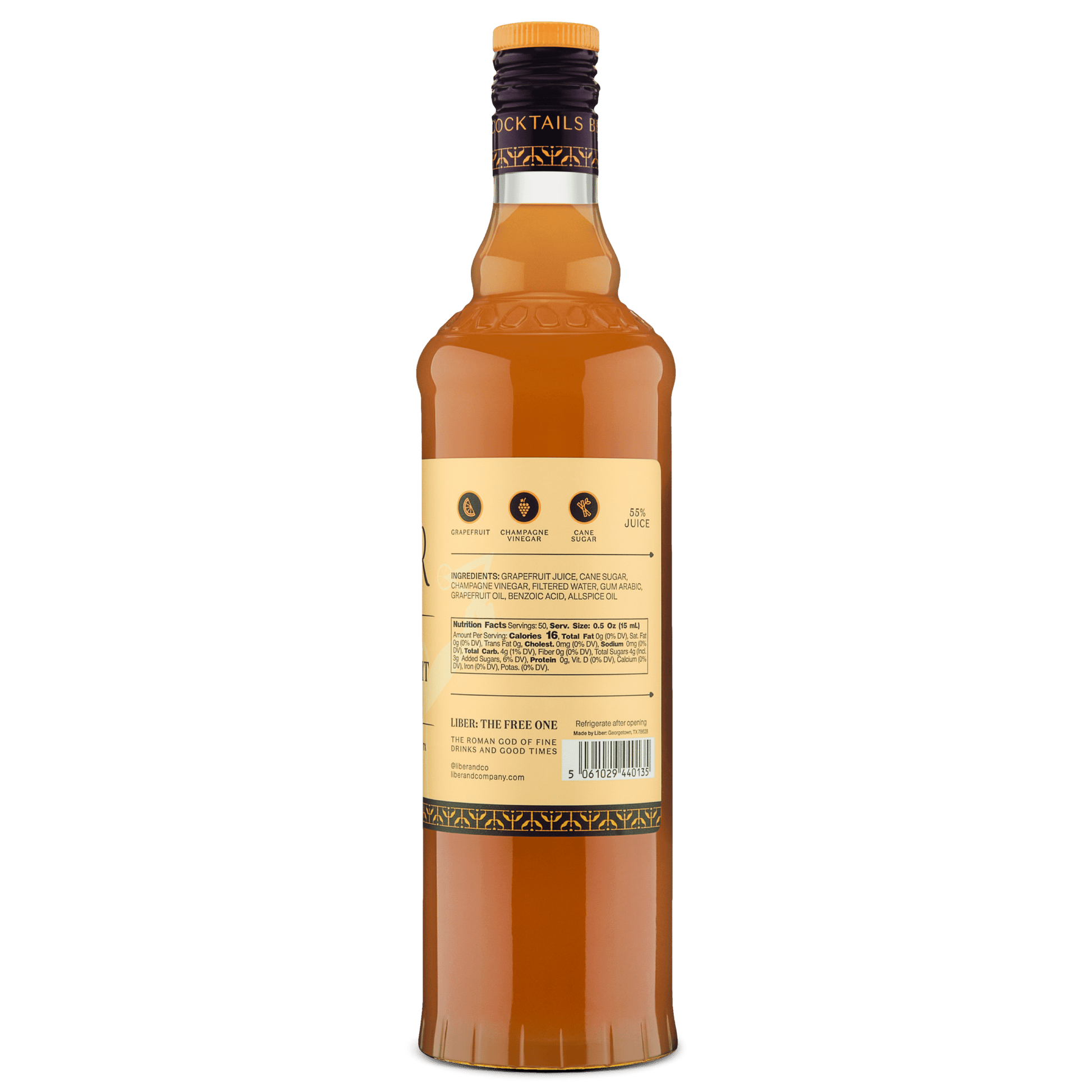 Texas grapefruit juice, champagne vinegar, cane sugar, gum arabic, benzoic acid